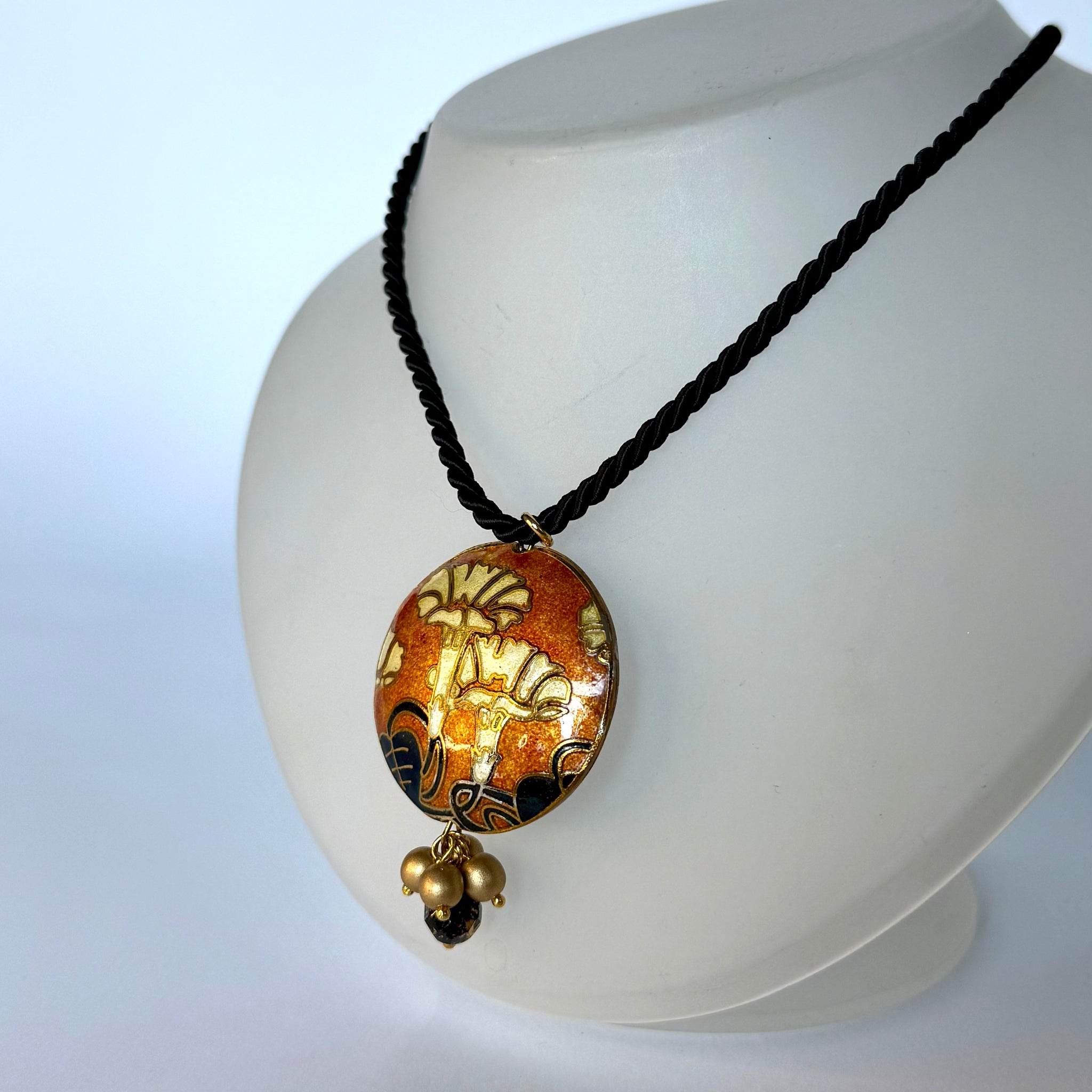 Floral Cloisonne necklace in Art Nouveau style (orange & black)